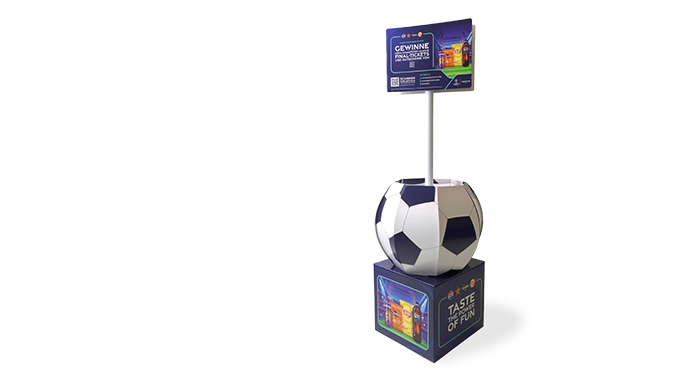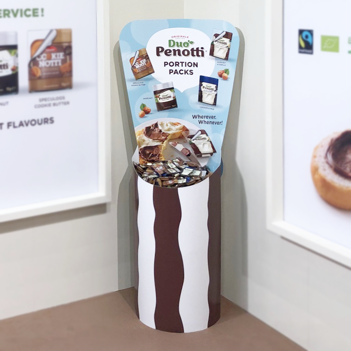 Deze ronde kartonnen dumpbin is geschikt om bulkproducten in te presenteren en acties in te promoten.