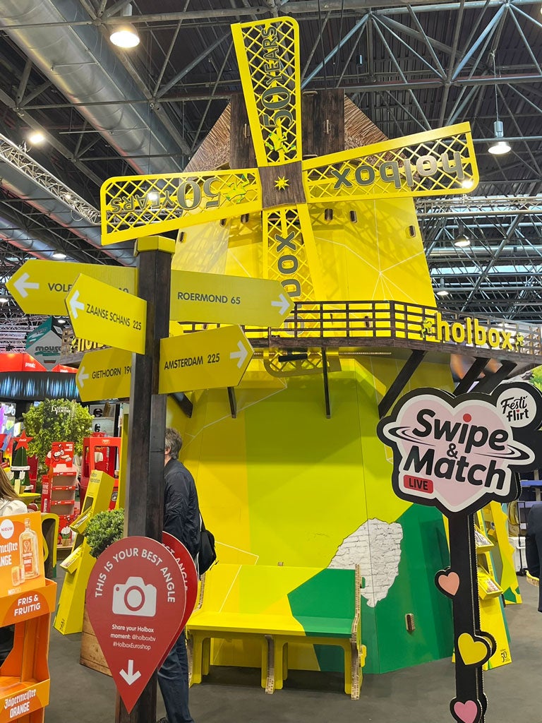 Zo waren er interactieve displays, zoals stand-in figuren, ons swipe & match paneel en de geschiedenis van Holbox aan de binnenkant van de molen. Daarnaast maakten ook de Re-board bomen, bankjes en andere beursmeubels deel uit van het totaalconcept. Ze waren niet alleen functioneel, maar versterkten ook de uitstraling en sfeer van de stand.